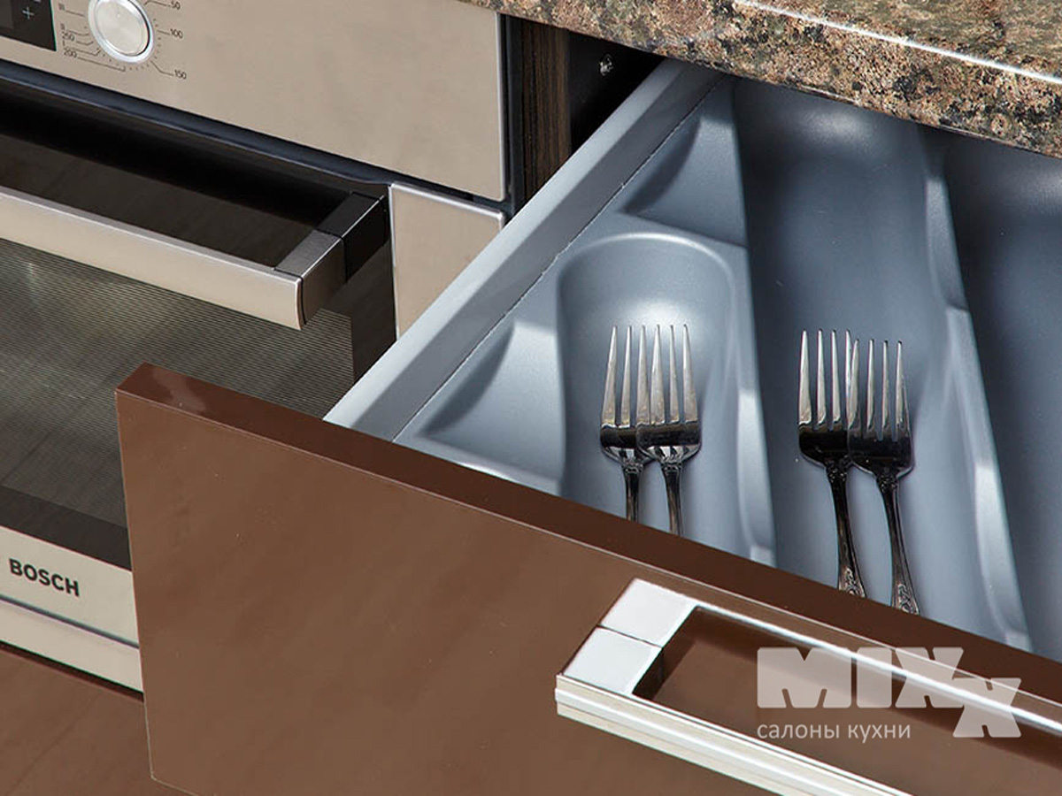 Особенность серии Арма – это универсальное пластиковое покрытие фасадов. Во-первых, материал не прихотлив в уходе, что очень удобно, если с готовкой помогают дети или муж. Пластик не впитывает запахи и воду, покрытие сохранит цвет и фактуру на всем протяжении использования кухни. Кухни МИКС – это более 20 трендовых оттенков. Заказать вариацию под настроение можно за пару кликов на сайте. Стильным дополнением кухни является точечная подсветка. Создайте неповторимую атмосферу и для дружеской посиделки, и для романтического ужина. Практичное дополнение – это стильная фурнитура и надежные выдвижные механизмы. Десятки лет работы без дефектов, поломок.