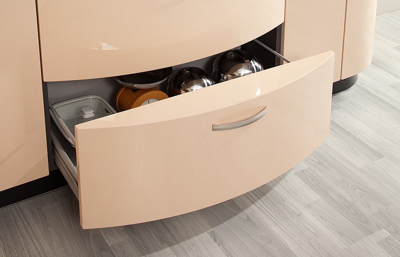 Сочетание передовых технологий и утонченной изысканности – это кухня Богема. Плавные линии, округлые формы, объем – никого не оставят равнодушными. Кроме того, что кухня с первой минуты притягивает взгляд, она и по функциональному оснащению не уступает премиум вариациям, хотя базовая комплектация – это средний, бюджетный уровень. Угловые шкафы позволяют легко размещать габаритную посуду, при этом ставить и вынимать из них кухонные приборы очень просто. Оригинальные выдвижные механизмы позволяют оптимизировать внутренне пространство, но и снаружи на открытых полках достаточно место для хранения продуктов из ежедневного рациона. Заказать кухню Богема – это окунуться в мир роскоши, красоты и изящества.