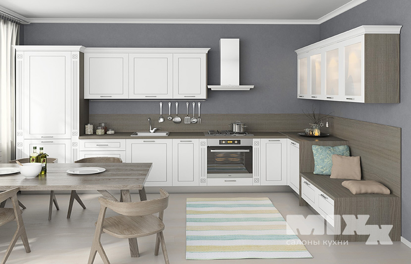 Изящная фрезеровка на фасадах, имитирующая рамку, позволяет кухне Эмика вписаться в любой интерьер, от классики до кантри. Даже футуристичный хай-тэк не останется в стороне, если выбрать глянцевое исполнение и необычное цветовое сочетание. Заказать нужную комбинацию можно прямо на сайте. Мы гарантируем минимальные сроки изготовления, качество и бережную сборку. Купить кухни MIXX – это приобрести возможность для кулинарного творчества и вдохновения. Не ограничивайте себя стереотипами, пробуйте новое, ставьте эксперименты, а мы поможет воплотить фантазии в жизнь!