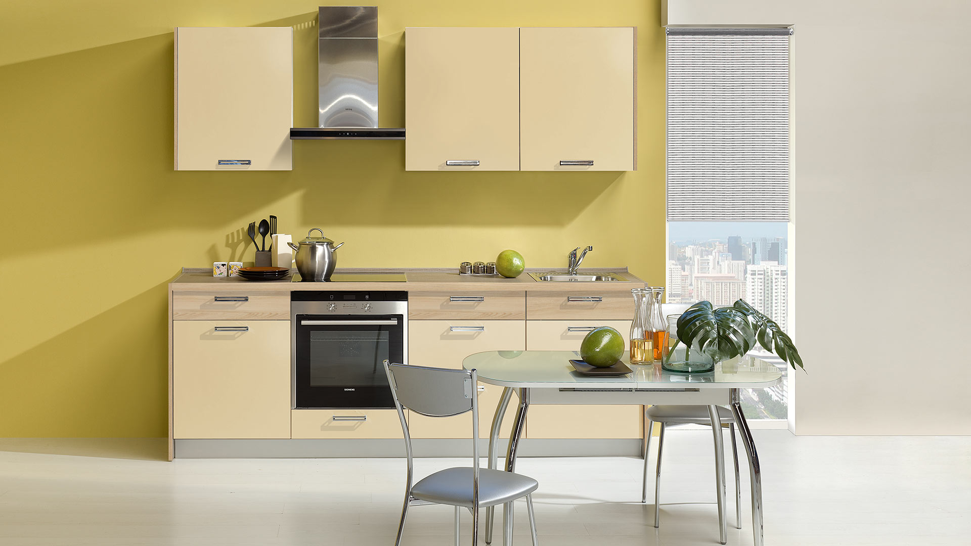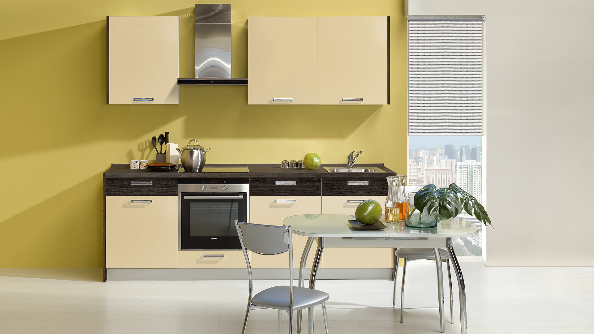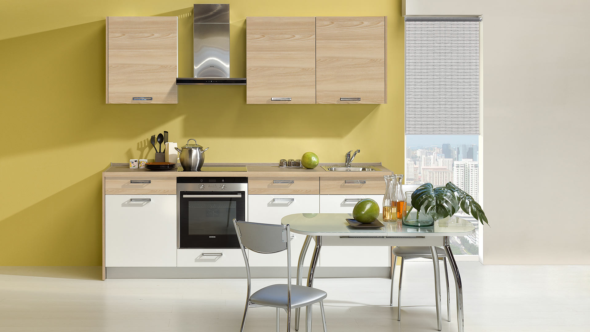 Искусственный шпон – это натуральный материал. В отличие от шпона природного происхождения он имеет однородный рисунок по всей поверхности, а глубина текстуры везде одинакова. Это позволяет создавать кухонные фасады любых размеров и форм в едином выдержанном стиле. В остальном искусственный шпон не уступает своему собрату. Такая же приятная для глаза текстура, живой и тёплый на ощупь материал. Кухня прослужит не один десяток лет без потери первоначального вида. Дополняет комбинацию качественная, надежная и стильная фурнитура. Мы изготовим на заказ любой проект и для небольшой кухни в однокомнатной квартире, и для просторной творческой гастрономической лаборатории частного дома.